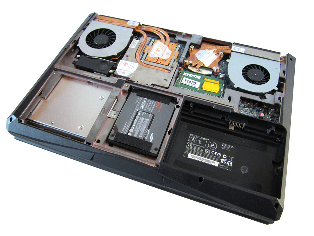 CLEVO leaving the needs of laptop users comply P157SM easy access to system components. In this way without any problems replacing the drive with a larger one, increase the efficiency of bone RAM or simply clear the laptop with residual dust.