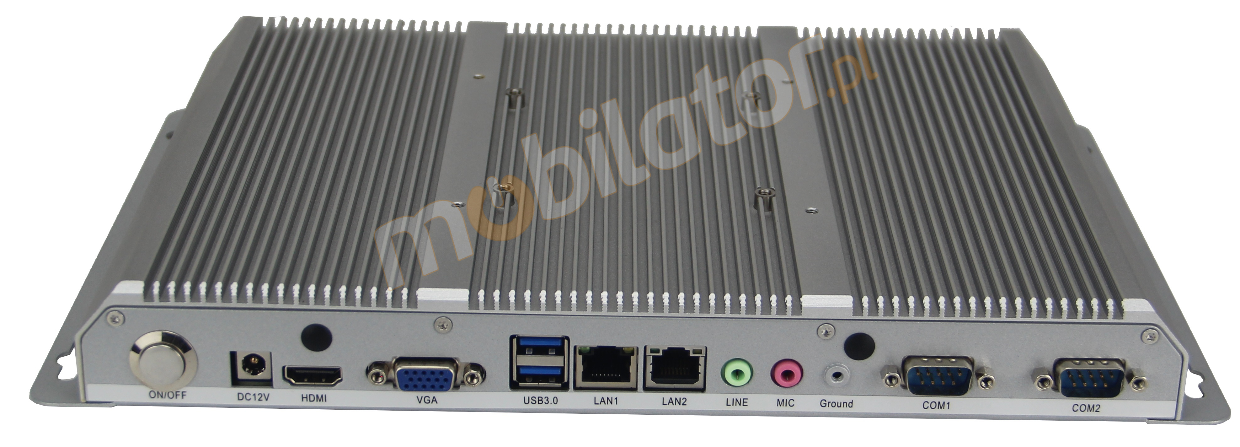 The industrial Mini PC uses a proven cooling system, based only on solid elements, mainly heat sinks.The system uses the phenomenon of metals passing thermal energy into the environment - there are no additional moving elements in the form of eg fans.This solution ensures noiseless operation, lower failure rate and greater protection against dust and other dirt while reducing the amount of energy consumed.