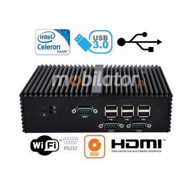 Detailed device specification is available in the "Technical data" tab.The industrial Mini PC uses a proven cooling system, based only on solid elements, mainly heat sinks. The system uses the phenomenon of metals passing thermal energy into the environment - there are no additional moving elements in the form of eg fans. This solution ensures noiseless operation, lower failure rate and greater protection against dust and other dirt while reducing the amount of energy consumed.