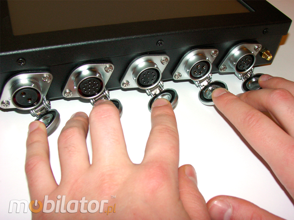 Panel PC CT10-PC-IP65 is equipped with a specialized aluminum connectors which are attached all the necessary ports and interfaces. Ports fitted with a special 7 pin connector, which provides excellent quality.
