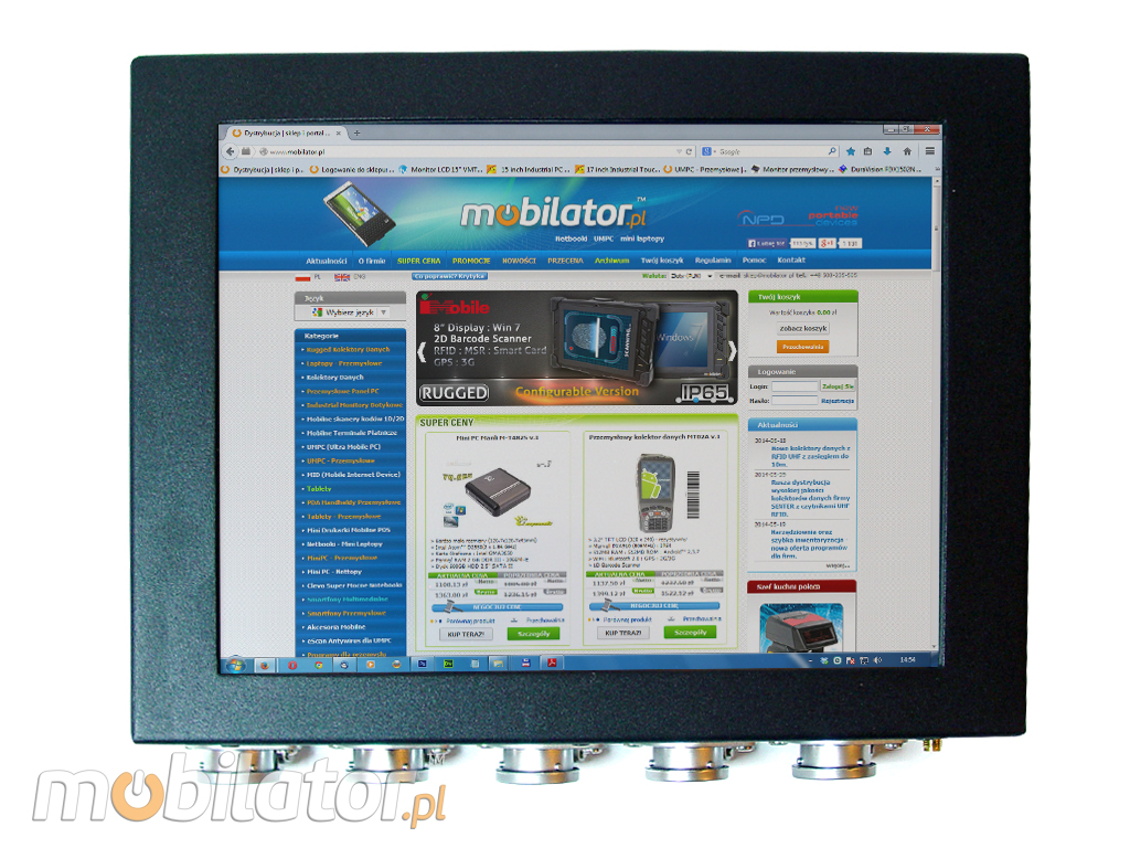 Industrial Panel PC through COM port (RS232) can be used to connect multiple devices in the warehouse (store) and make them easier to control. Its durable housing is perfectly designed for the harsh conditions prevailing in these areas. Any dust or dirt does not impede him in his work, will work without any problems even in high concentrations of dust and in polluted environments.