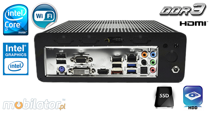 Using the latesttechnologyDigitalEngine (industrial fanless MiniPC) isdesignedfor continuousmultitaskingoperatingwith low power consumption.An importantadvantage is theeffective combination ofsmall sizewith considerableopportunitiesthrough the use ofIntel'sprocessor family,IntelchipsetandDDR3 memory.IntegratedIntelHD Graphics 4600videoand audioRealtekALC892allow you to playa wide range ofapplications andmedia files(video, audio)-inFull HD quality.Disks offer free space 128GBSSD.
