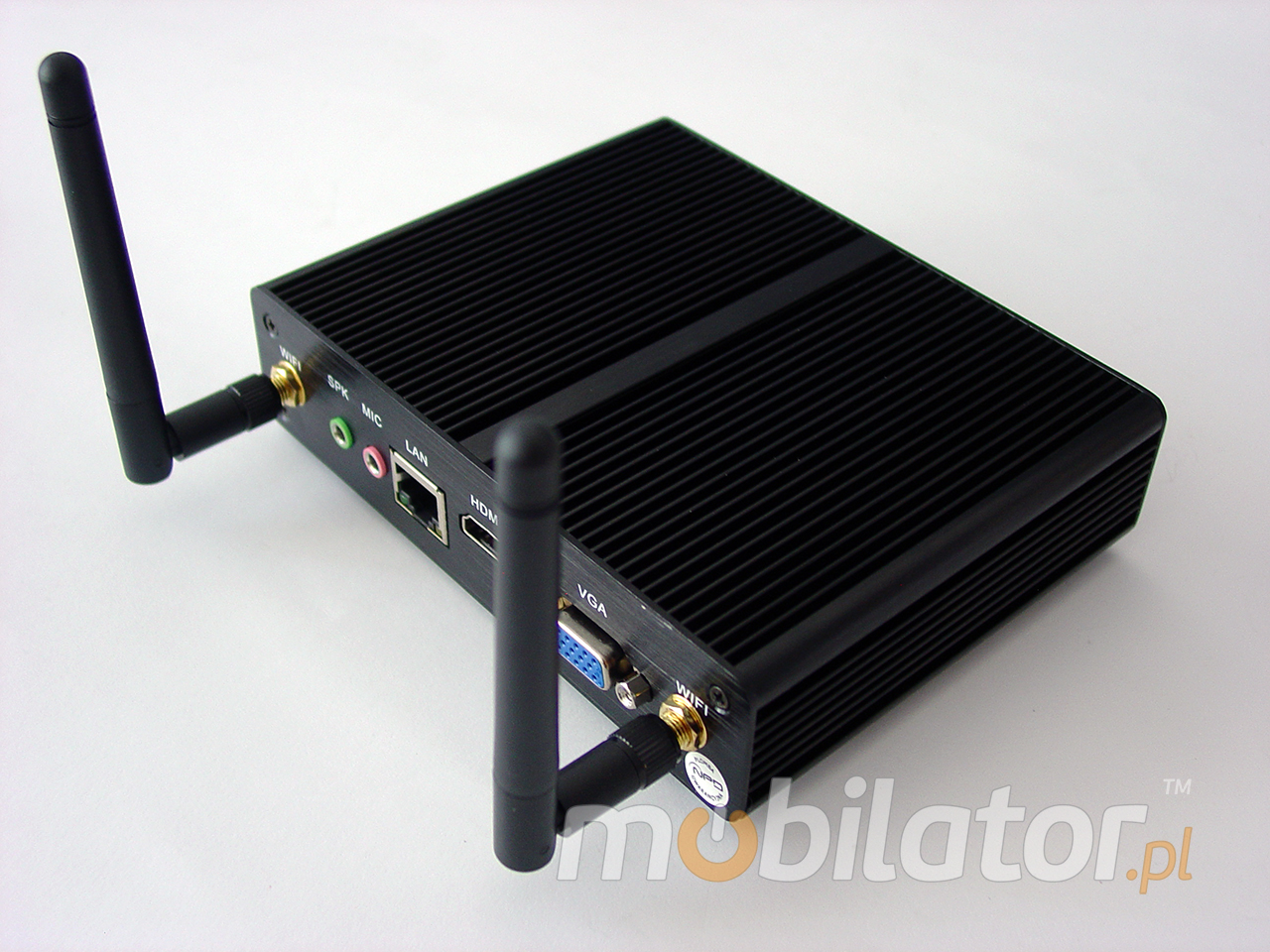 Industrial MiniPC Series MBOX Nuc M180 are based on high-performance two-core processors and high-quality components. Mini computers are locked in small industrial housing which perfectly discharge heat from the device interior. Wide choice of IBOX models can give possibility to configure, enabling optimal selection of mini computer to multimedia applications and industrial applications. The biggest advantagesIndustrial Fanless MiniPC mBOX Nuc M180 of these devices are: small size, performance and energy efficiency. An extra pair of brackets at the bottom of the enclosure increases the possibility of installation in all kinds of places and positions. Offered model mini PC has been selectively chosen and configured specifically to the requirements of Digital Signage systems, gaming machines, amusement machines, information kiosks and industrial automation systems.