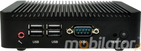 Integrated card - Intel RTL8111E LAN (optional WiFi module) allow connection to the network. The computer is equipped with: two LAN port, one COM(RS232) port, one VGA output, three USB 2.0 ports, one USB 3.0 port, one HDMI output one way audio, one microphone input.