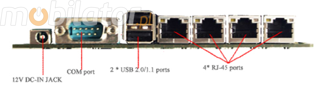 Integrated card - Realtek RTL8111EVL PCI-E Gigabit Ethernet LAN and WiFi module allows connection to the network. The computer is equipped with: four LAN port, one COM port (RS232), one VGAports, four USB 2.0 ports.