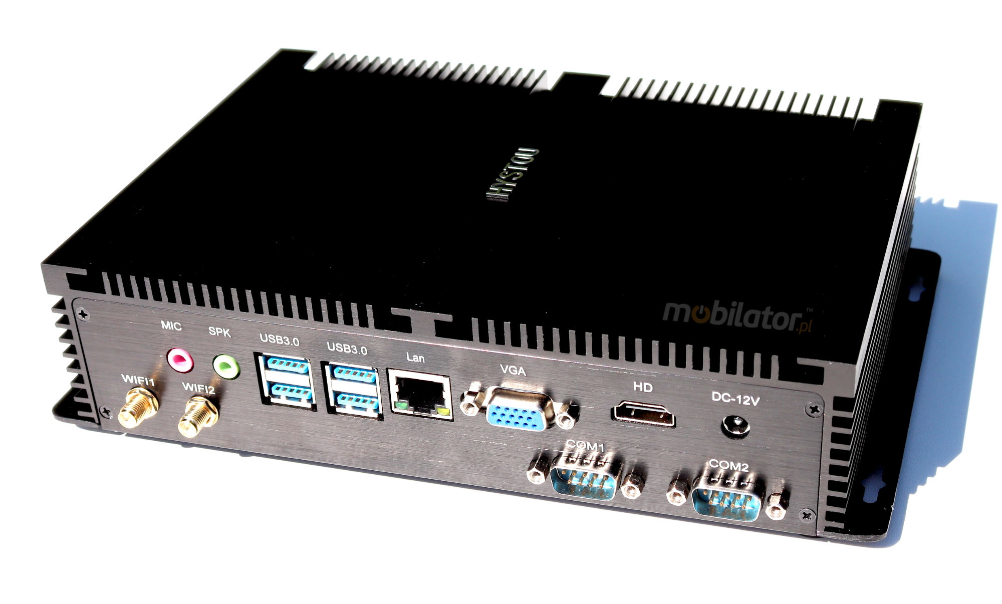 Industrial  MiniPC HyBOX 04PMF-i3-4010u are based on high-performance quad-core processors and high-quality components. Mini computers are locked in small industrial housing which perfectly discharge heat from the device interior. Wide choice of HyBOX models can give possibility to configure, enabling optimal selection of mini computer to multimedia applications and industrial applications. The biggest advantagesPrzemys³owy Industrial Komputer Fanless MiniPC RS232 USB 3.0 COM LAN RJ-45 HDMI VGA Mini Computer of these devices are: small size, performance and energy efficiency. An extra pair of brackets at the bottom of the enclosure increases the possibility of installation in all kinds of places and positions. Offered model mini PC has been selectively chosen and configured specifically to the requirements of Digital Signage systems, gaming machines, amusement machines, information kiosks and industrial automation systems.