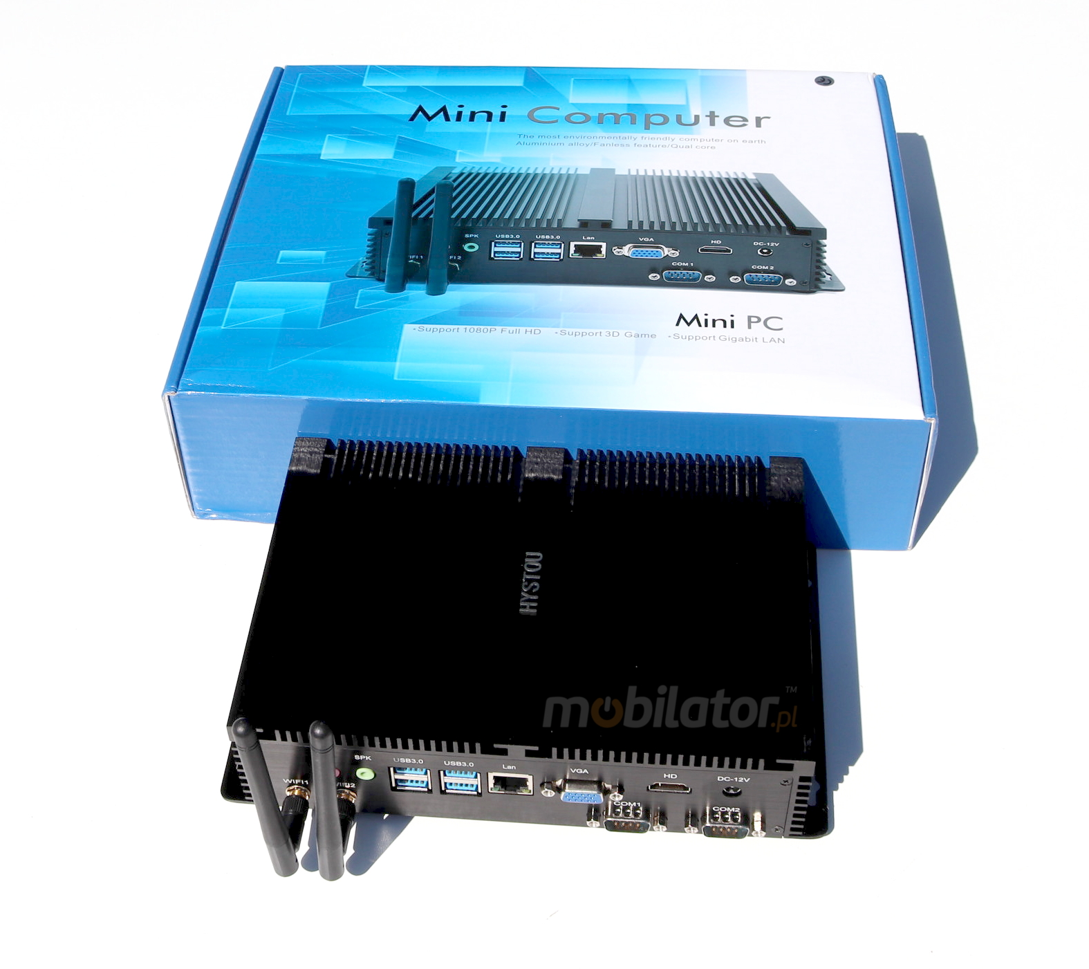 Industrial  MiniPC HyBOX 04PMF-i3-4010u are based on high-performance quad-core processors and high-quality components. Mini computers are locked in small industrial housing which perfectly discharge heat from the device interior. Wide choice of HyBOX models can give possibility to configure, enabling optimal selection of mini computer to multimedia applications and industrial applications. The biggest advantagesPrzemys³owy Industrial Komputer Fanless MiniPC RS232 USB 3.0 COM LAN RJ-45 HDMI VGA Mini Computer of these devices are: small size, performance and energy efficiency. An extra pair of brackets at the bottom of the enclosure increases the possibility of installation in all kinds of places and positions. Offered model mini PC has been selectively chosen and configured specifically to the requirements of Digital Signage systems, gaming machines, amusement machines, information kiosks and industrial automation systems.