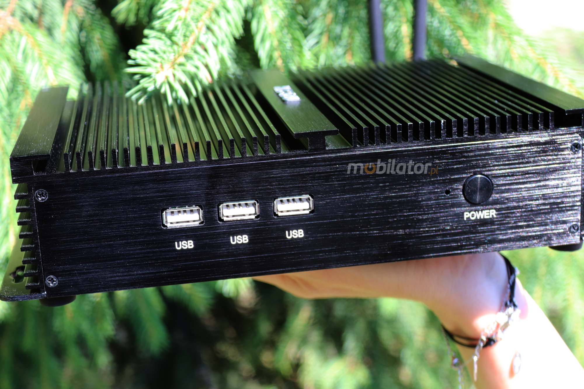 The industrial fanless  MiniPC HyBOX 04PMF-i3-5005u uses a special method of cooling. This cooling takes place mainly by means of housing having a very large surface (longitudinal lamells, ribs) - for heat dissipation. Fan used inside the computer is designed to rapidly drain hot air from the CPU, allowing MiniPC to reach more efficiently and faster cooling.