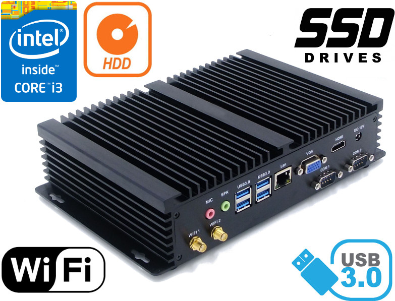 Przemys³owy Industrial Komputer Fanless MiniPC RS232 USB 3.0 COM LAN RJ-45 HDMI VGA Mini Computer
