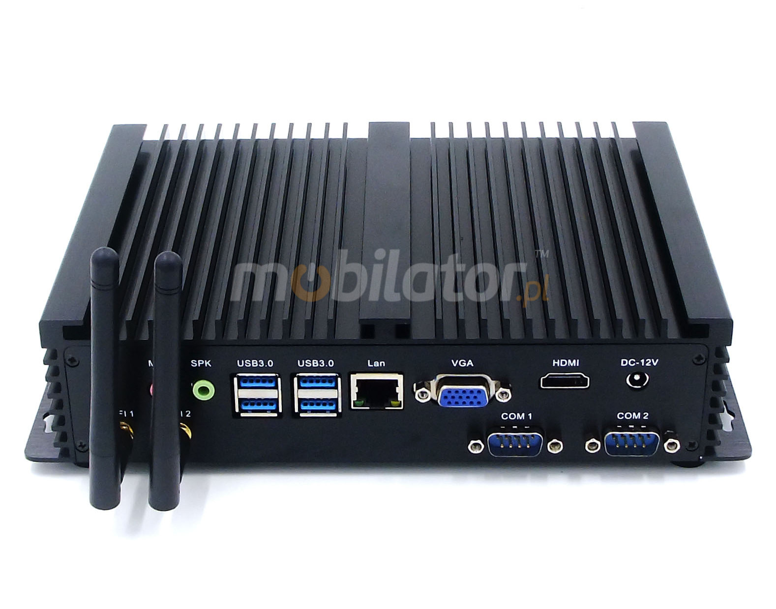 Industrial fanless MiniPC HyBOX 04PMF-i3-4010u by USB and COM ports can be used to connect multiple devices in the store or warehouse and make them easier to control. Its durable housing is perfectly designed for the harsh conditions prevailing in these areas. Any dust or dirt does not impede him in his work, will work without any problems even in high concentrations of dust and in polluted environments.