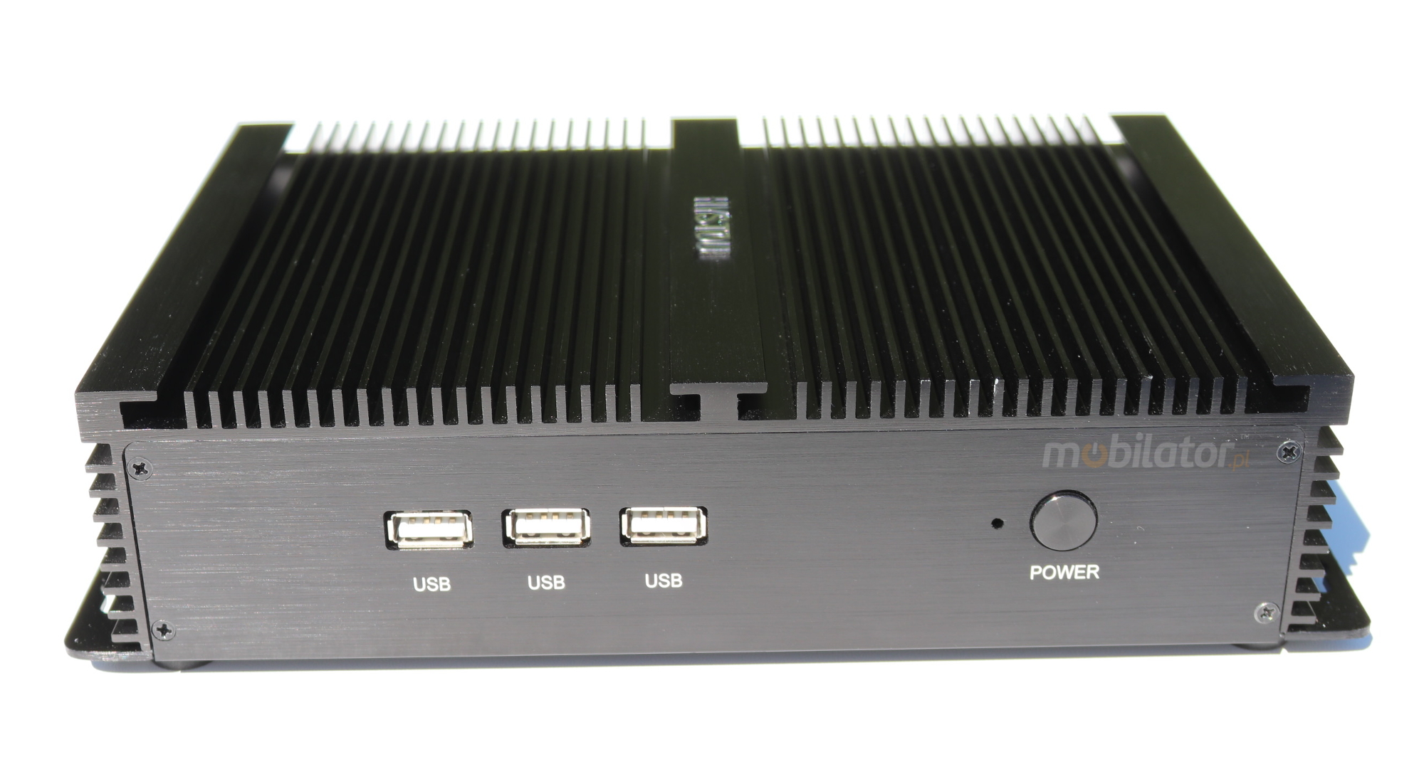 The industrial fanless MiniPC HyBOX 04PMF-i3-4010u uses a special method of cooling. This cooling takes place mainly by means of housing having a very large surface (longitudinal lamells, ribs) - for heat dissipation. Fan used inside the computer is designed to rapidly drain hot air from the CPU, allowing MiniPC to reach more efficiently and faster cooling.