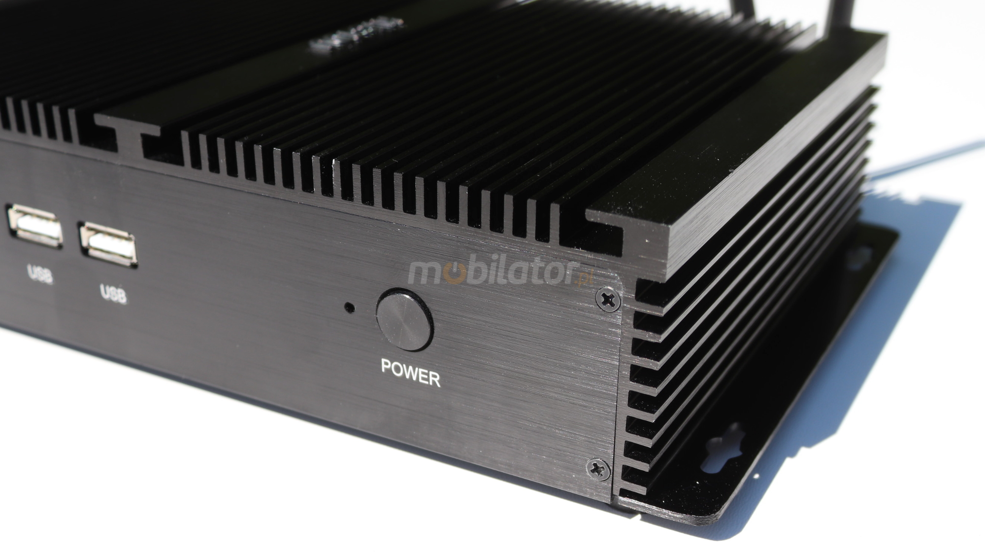 The industrial fanless MiniPC HyBOX 04PMF-i7-5550u uses a special method of cooling. This cooling takes place mainly by means of housing having a very large surface (longitudinal lamells, ribs) - for heat dissipation. Fan used inside the computer is designed to rapidly drain hot air from the CPU, allowing MiniPC to reach more efficiently and faster cooling.