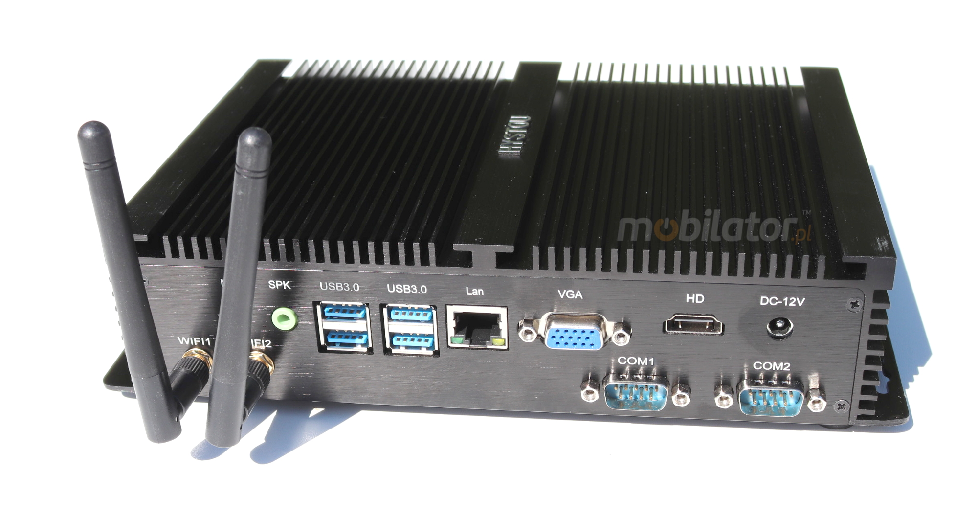 Industrial fanless MiniPC HyBOX 04PMF-i7-5550u by USB and COM ports can be used to connect multiple devices in the store or warehouse and make them easier to control. Its durable housing is perfectly designed for the harsh conditions prevailing in these areas. Any dust or dirt does not impede him in his work, will work without any problems even in high concentrations of dust and in polluted environments.