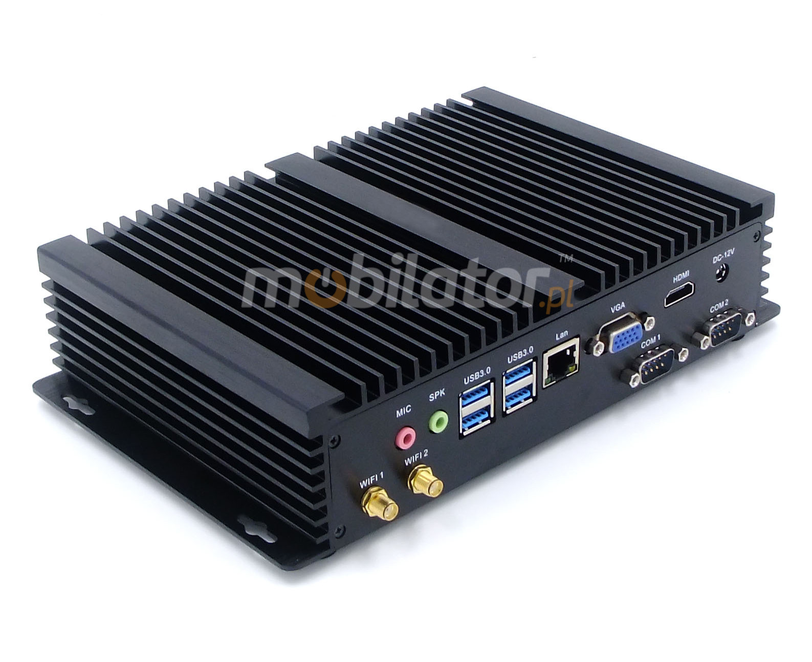 Industrial  MiniPC HyBOX 04PMF-i7-5550u are based on high-performance quad-core processors and high-quality components. Mini computers are locked in small industrial housing which perfectly discharge heat from the device interior. Wide choice of HyBOX models can give possibility to configure, enabling optimal selection of mini computer to multimedia applications and industrial applications. The biggest advantagesPrzemys³owy Industrial Komputer Fanless MiniPC RS232 USB 3.0 COM LAN RJ-45 HDMI VGA Mini Computer of these devices are: small size, performance and energy efficiency. An extra pair of brackets at the bottom of the enclosure increases the possibility of installation in all kinds of places and positions. Offered model mini PC has been selectively chosen and configured specifically to the requirements of Digital Signage systems, gaming machines, amusement machines, information kiosks and industrial automation systems.