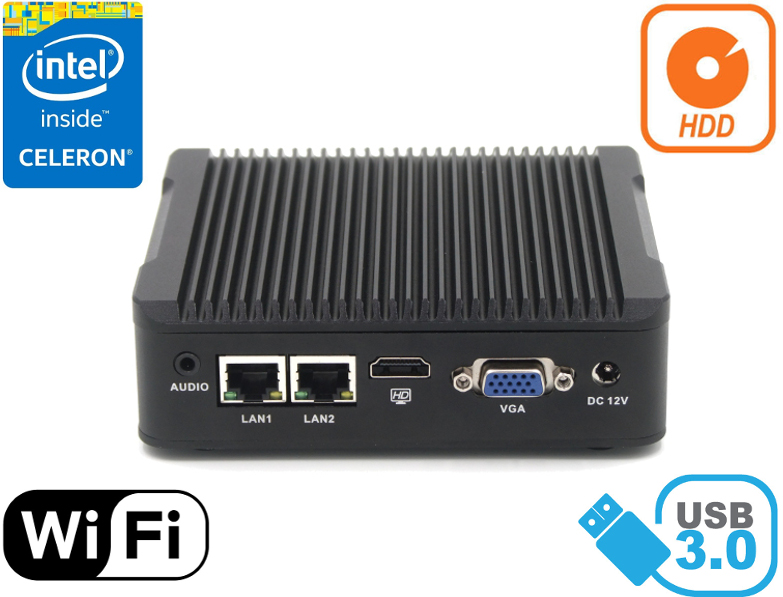 Industrial Computer Fanless MiniPC RS232 USB 3.0 COM LAN RJ-45 HDMI VGA Mini computer