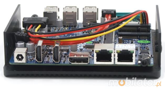 Integrated card - Intel RTL811E 1000M Lan and the Wi-Fi module allow connection to the network. The computer is equipped with: two LAN ports, one DisplayPort port, two HDMI ports, twoUSB 3.0 ports, four USB 2.0ports, two COM(RS232) ports and abuilt-inconnectoron the motherboard: SATA port and mSATA port.