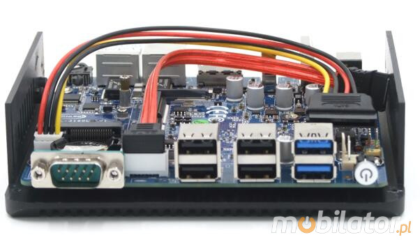 Integrated card - Intel RTL811E 1000M Lan and the Wi-Fi module allow connection to the network. The computer is equipped with: two LAN ports, one DisplayPort port, two HDMI ports, twoUSB 3.0 ports, four USB 2.0ports, two COM(RS232) ports and abuilt-inconnectoron the motherboard: SATA port and mSATA port.