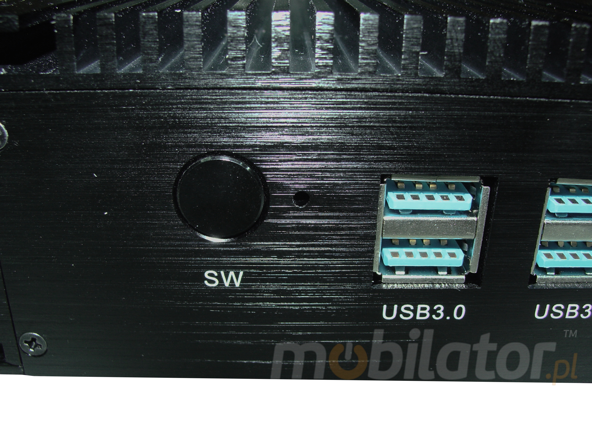 The industrial fanless  MiniPC HyBOX 0B4PMF-2955U uses a special method of cooling. This cooling takes place mainly by means of housing having a very large surface (longitudinal lamells, ribs) - for heat dissipation. Fan used inside the computer is designed to rapidly drain hot air from the CPU, allowing MiniPC to reach more efficiently and faster cooling.