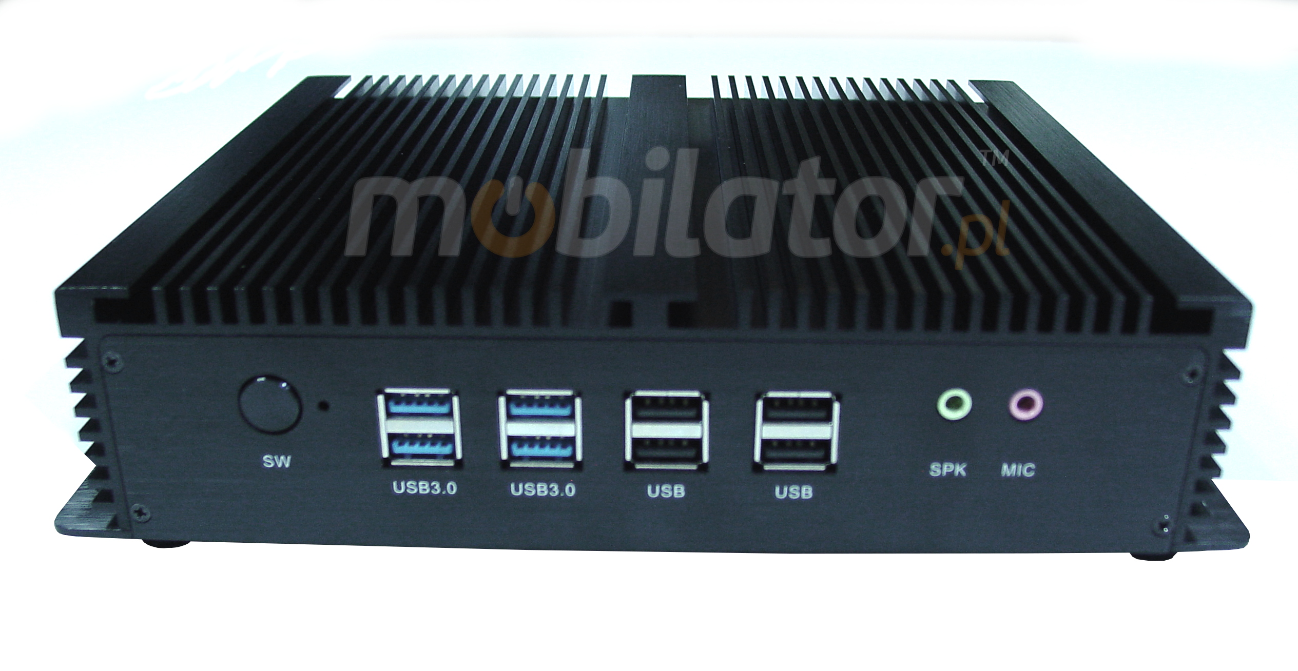 The industrial fanless  MiniPC HyBOX 0B4PMF-i3-4010u uses a special method of cooling. This cooling takes place mainly by means of housing having a very large surface (longitudinal lamells, ribs) - for heat dissipation. Fan used inside the computer is designed to rapidly drain hot air from the CPU, allowing MiniPC to reach more efficiently and faster cooling.
