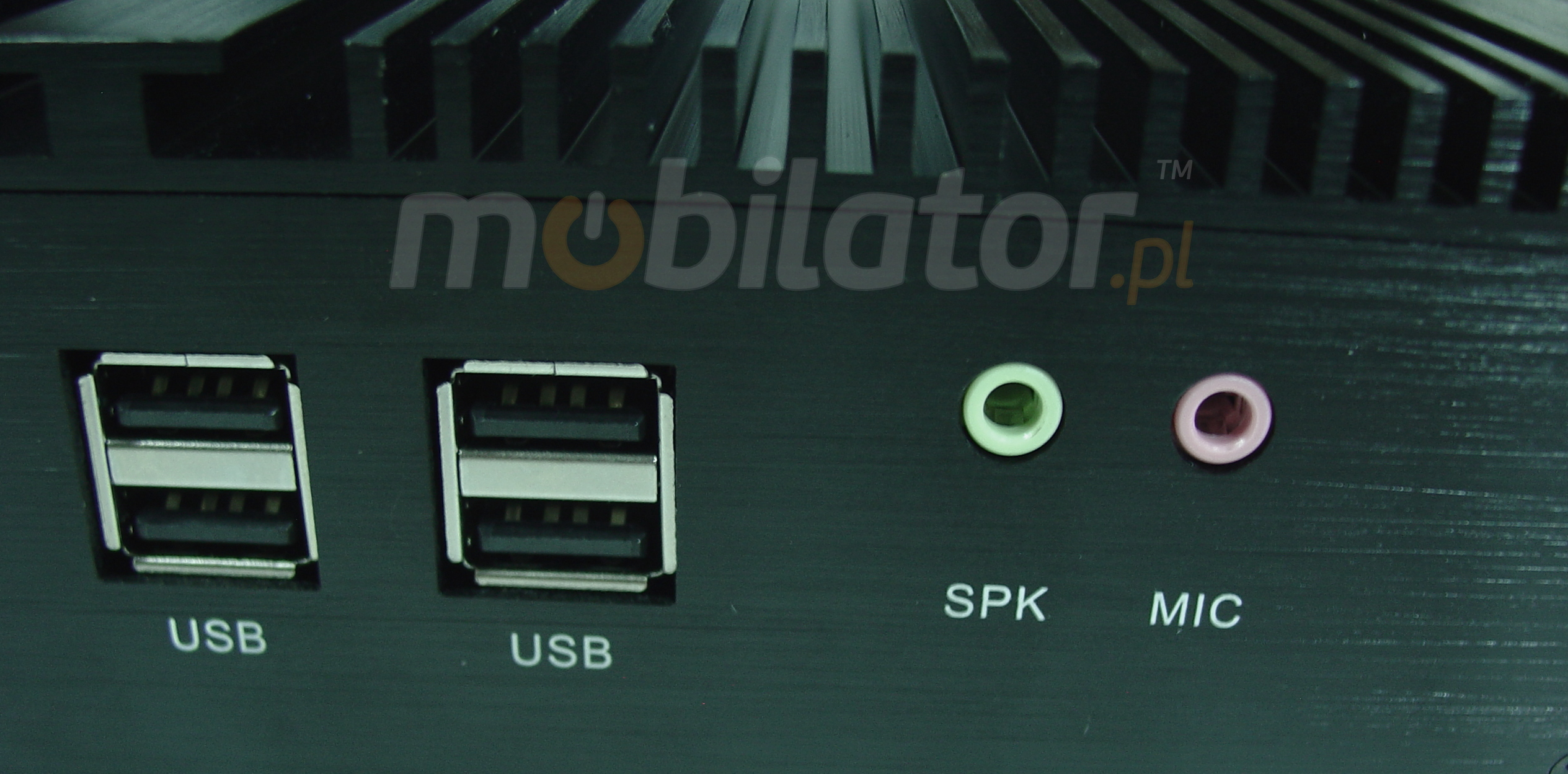 Integrated card - Intel 82574L Gigabit and the Wi-Fi module allow connection to the network. The computer is equipped with: two LAN ports,  two HDMI ports, four USB 3.0 ports, four USB 2.0 ports, six COM(RS232) ports, one Mic and one Speaker port and a built-in connector on the motherboard: SATA  port and mSATA port.