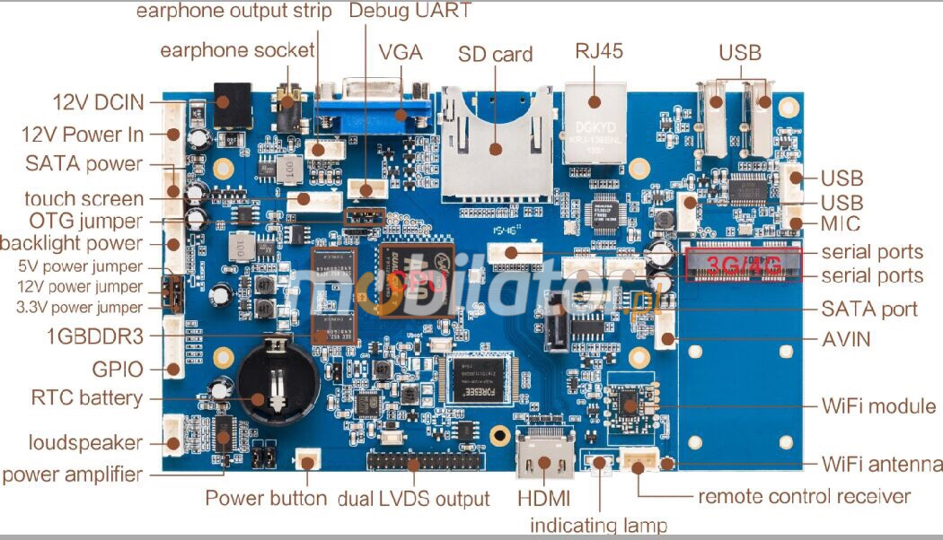Slot SD | HDMI | 1 x USB 2.0 HOST 1 x OTG | RJ-45 | VGA | SIM