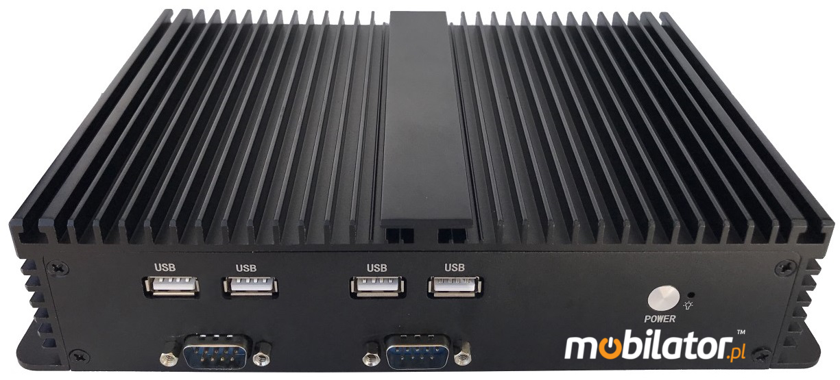 The industrial Mini PC uses a proven cooling system, based only on solid elements, mainly heat sinks.The system uses the phenomenon of metals passing thermal energy into the environment - there are no additional moving elements in the form of eg fans.This solution ensures noiseless operation, lower failure rate and greater protection against dust and other dirt while reducing the amount of energy consumed.