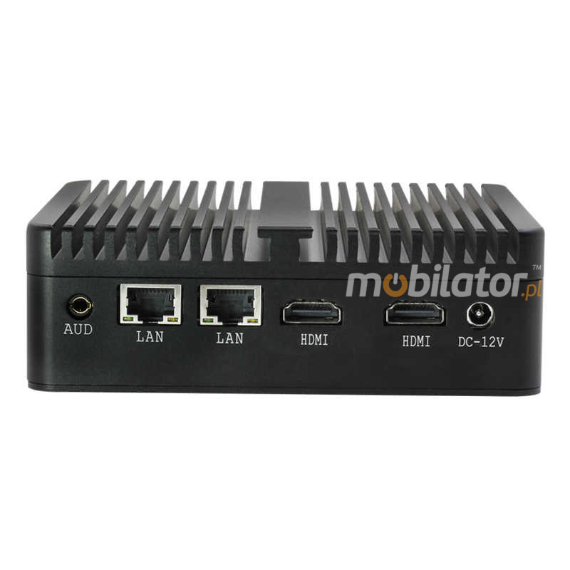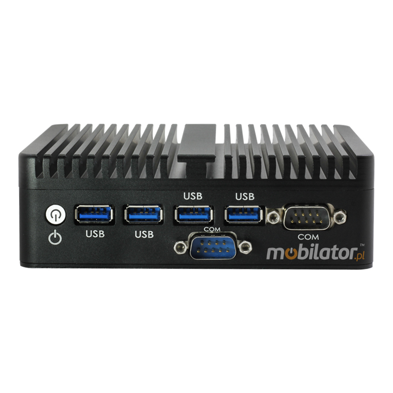 The industrial Mini PC uses a proven cooling system, based only on solid elements, mainly heat sinks.The system uses the phenomenon of metals passing thermal energy into the environment - there are no additional moving elements in the form of eg fans.This solution ensures noiseless operation, lower failure rate and greater protection against dust and other dirt while reducing the amount of energy consumed.