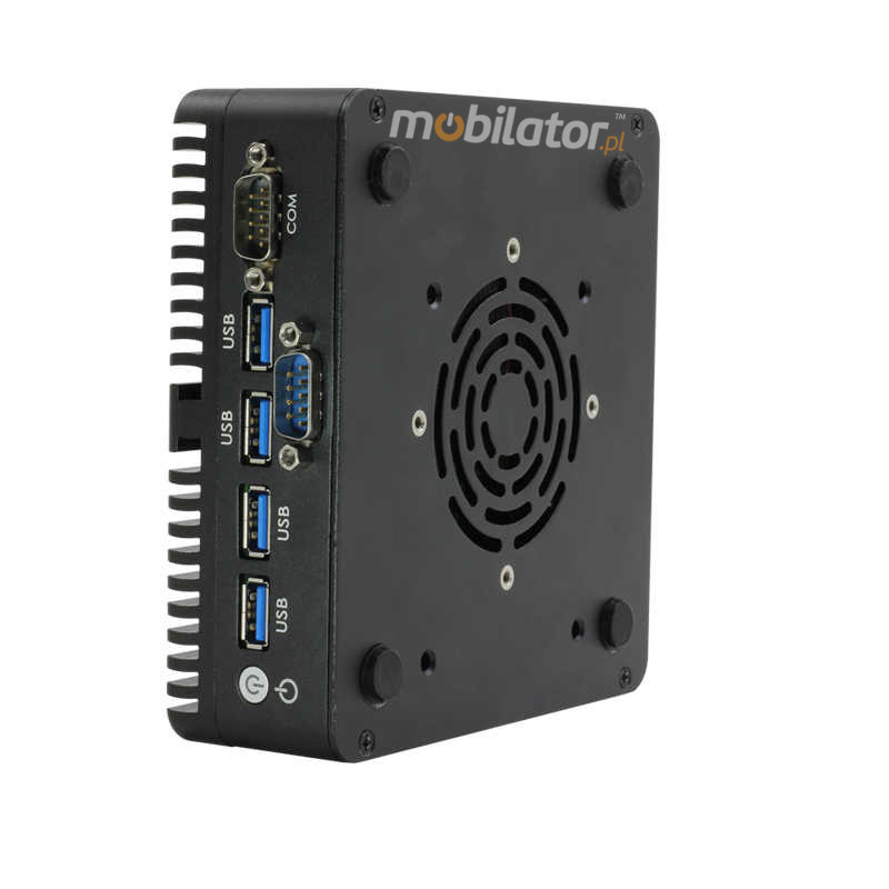 The industrial Mini PC uses a proven cooling system, based only on solid elements, mainly heat sinks. The system uses the phenomenon of metals passing thermal energy into the environment - there are no additional moving elements in the form of eg fans. This solution ensures noiseless operation, lower failure rate and greater protection against dust and other dirt while reducing the amount of energy consumed.
