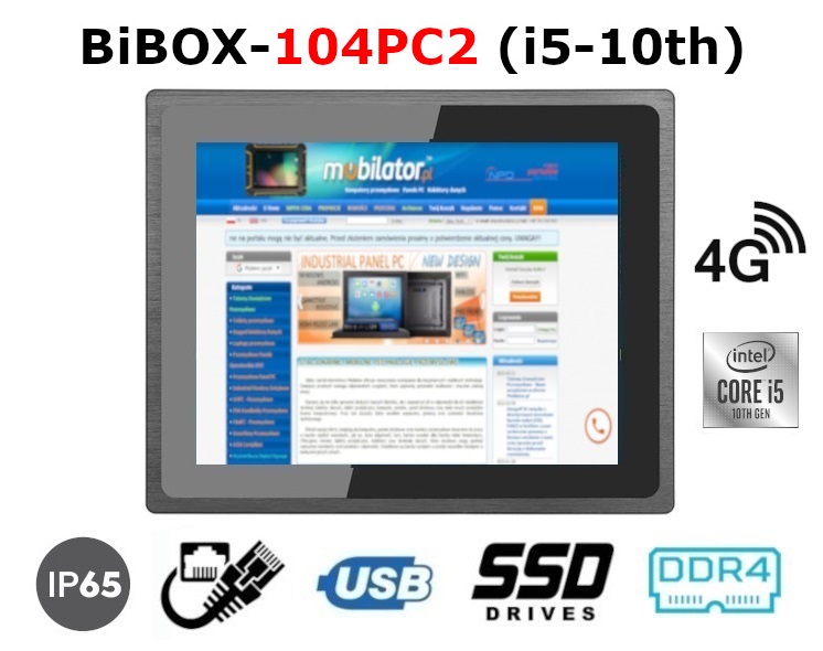 Industrial Panel PC BiBOX-104PC2 (i5-10th) is offered in several versions adapted to different needs.By clicking on the number of the hardware configuration you will be redirected to the product with the parameters given in the table below.In addition, it is possible to create a configuration that is currently unavailable on the customer's request.