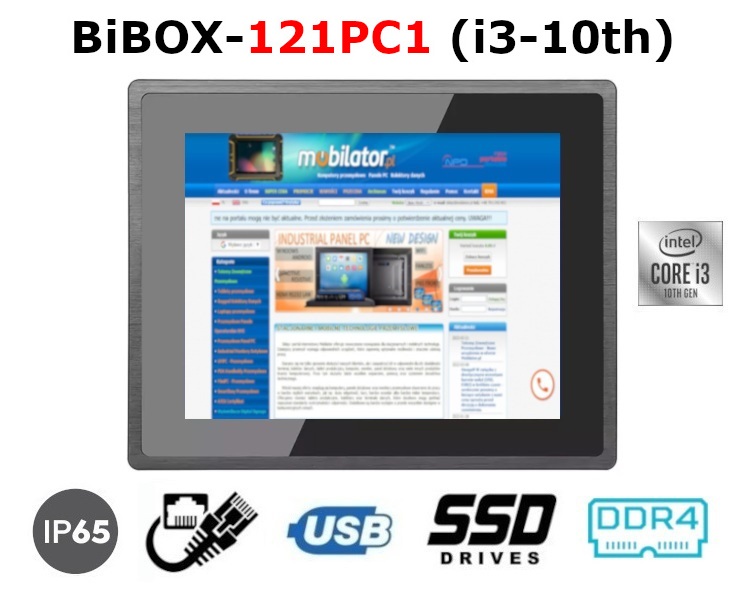BiBOX-121PC1 (i3-10th) v.1 - 12-inch panel computer with i3 processor, 4 GB RAM, 64 GB SSD disk and IP65 resistance standard (1xLAN, 4xUSB)