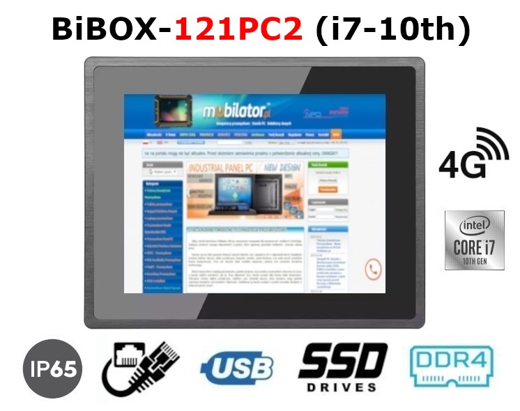 BiBOX-121PC2 (i7-10th) v.4 - Modern PanelPC with a touch screen, 4G connectivity, 16 GB RAM, a capacious 512 GB disk and IP65 resistance (2xLAN, 4xUSB)