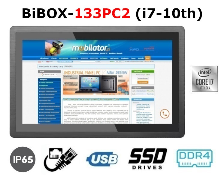 BiBOX-133PC2 (i7-10th) v.1 - 13-inch panel industrial computer with IP65 protection for the screen, with Intel Core i7 processor and SSD (2xLAN, 4xUSB)