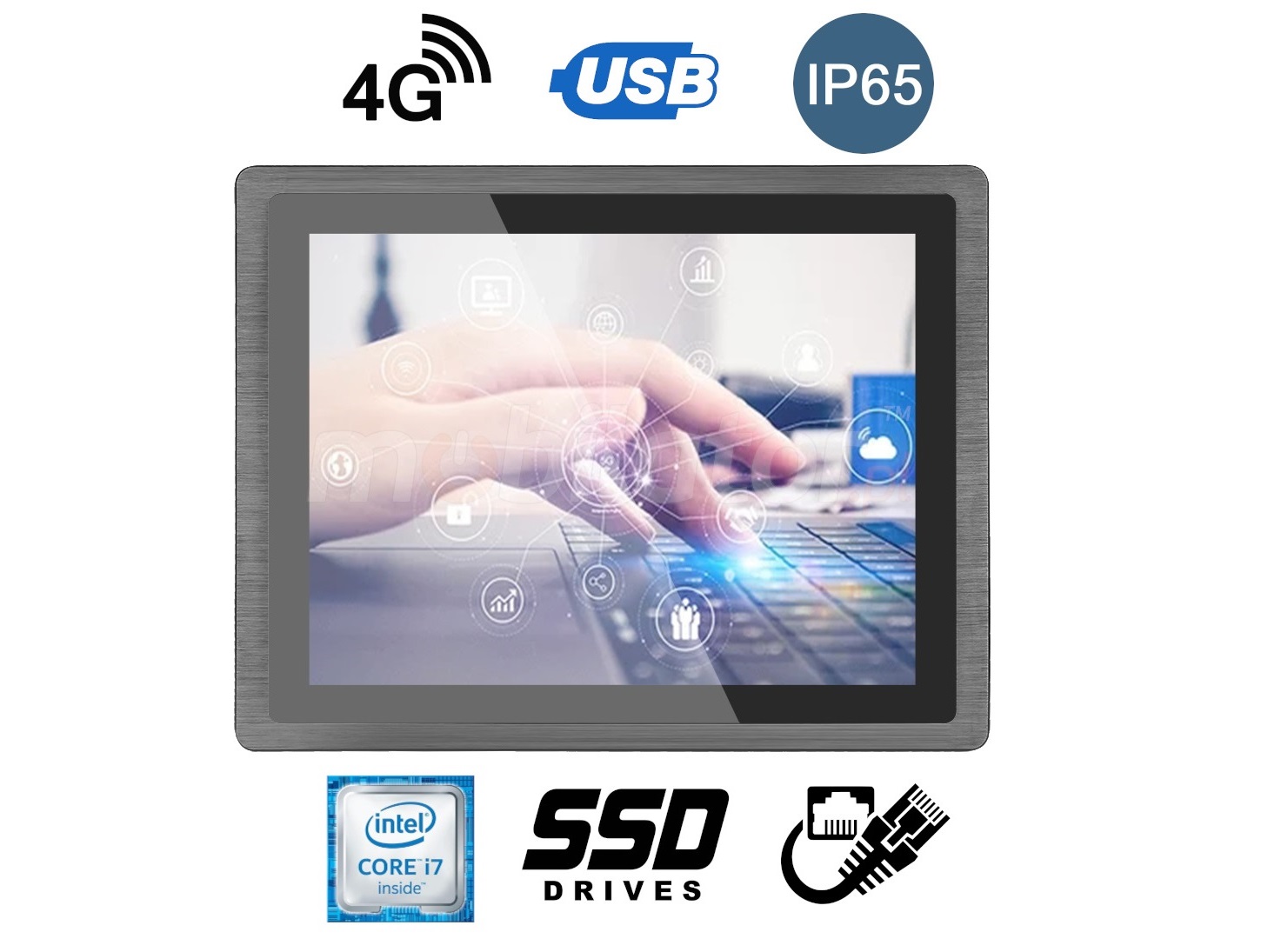 The industrial PC panel uses an efficient and energy-saving Intel Core i7-10th gen processor. In its interior there are four cooperating cores enabling more efficient processing of many tasks at the same time. Shared cache memory in which a multi-level hierarchy is used is dynamically allocated to each processor core depending on the load. This reduces the average access time to the main memory. Improved graphics card technology allows you to enjoy movies at full resolution and HD quality.