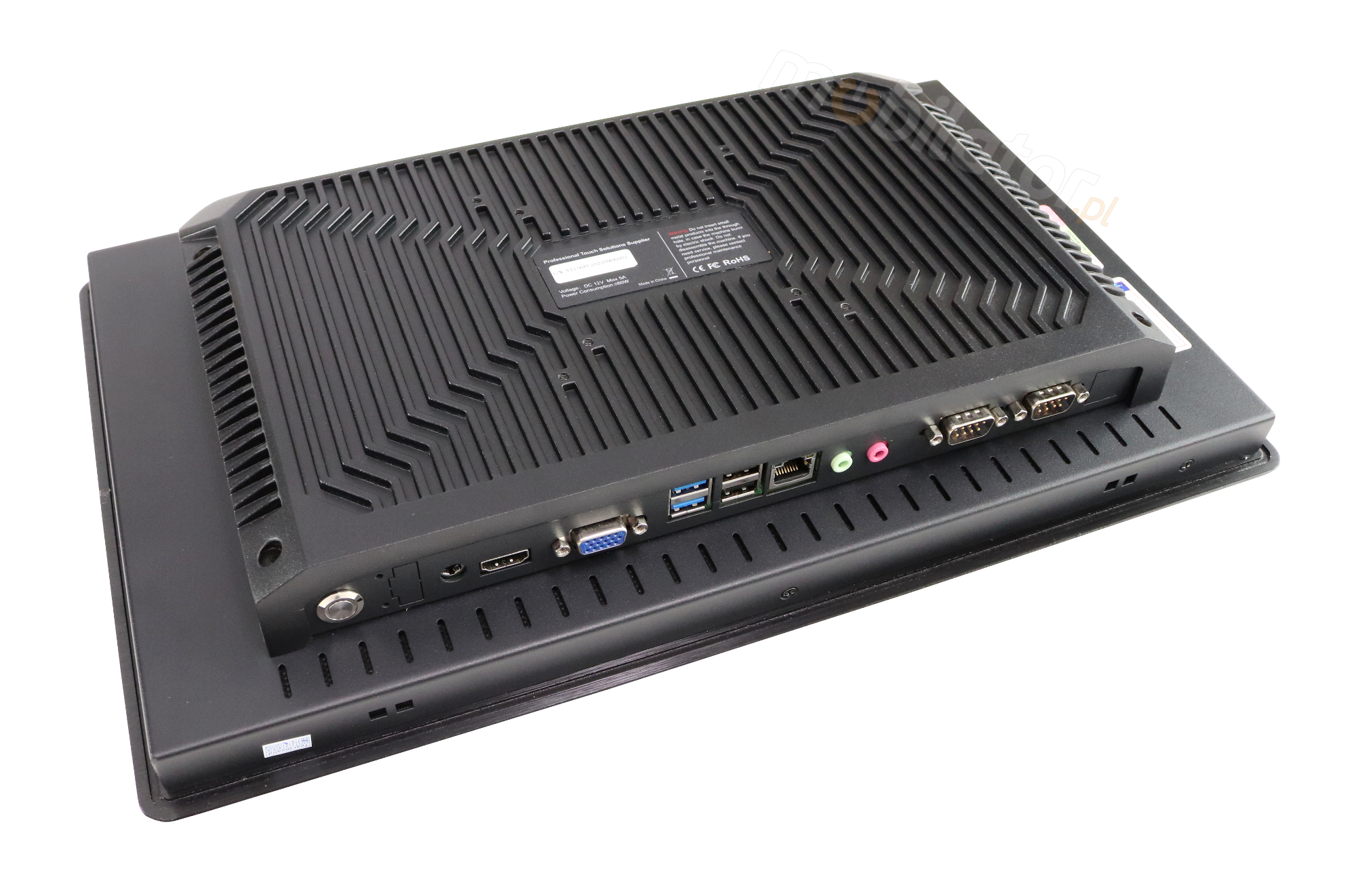 The panel PC has a good-quality metal casing. It is an important element of the cooling system thanks to specially designed cutouts that facilitate air circulation inside the housing. The overall design of the device is focused on simplicity and functionality, appreciated among professionals.
