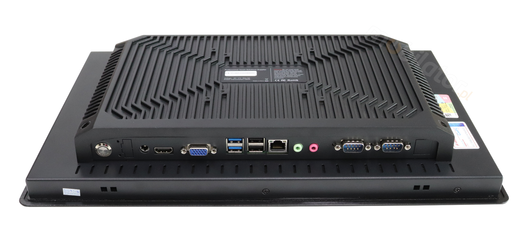 The panel PC has a good-quality metal casing. It is an important element of the cooling system thanks to specially designed cutouts that facilitate air circulation inside the housing. The overall design of the device is focused on simplicity and functionality, appreciated among professionals.