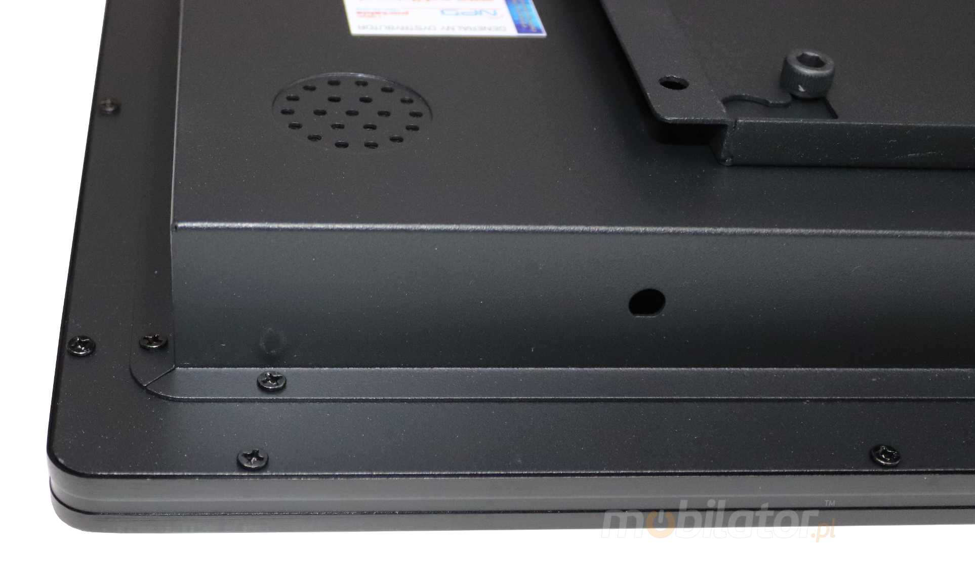 The panel PC has a good-quality metal casing. It is an important element of the cooling system thanks to specially designed cutouts that facilitate air circulation inside the housing. The overall design of the device is focused on simplicity and functionality appreciated by professionals, as an accessory the panel can be equipped with passive cooling.