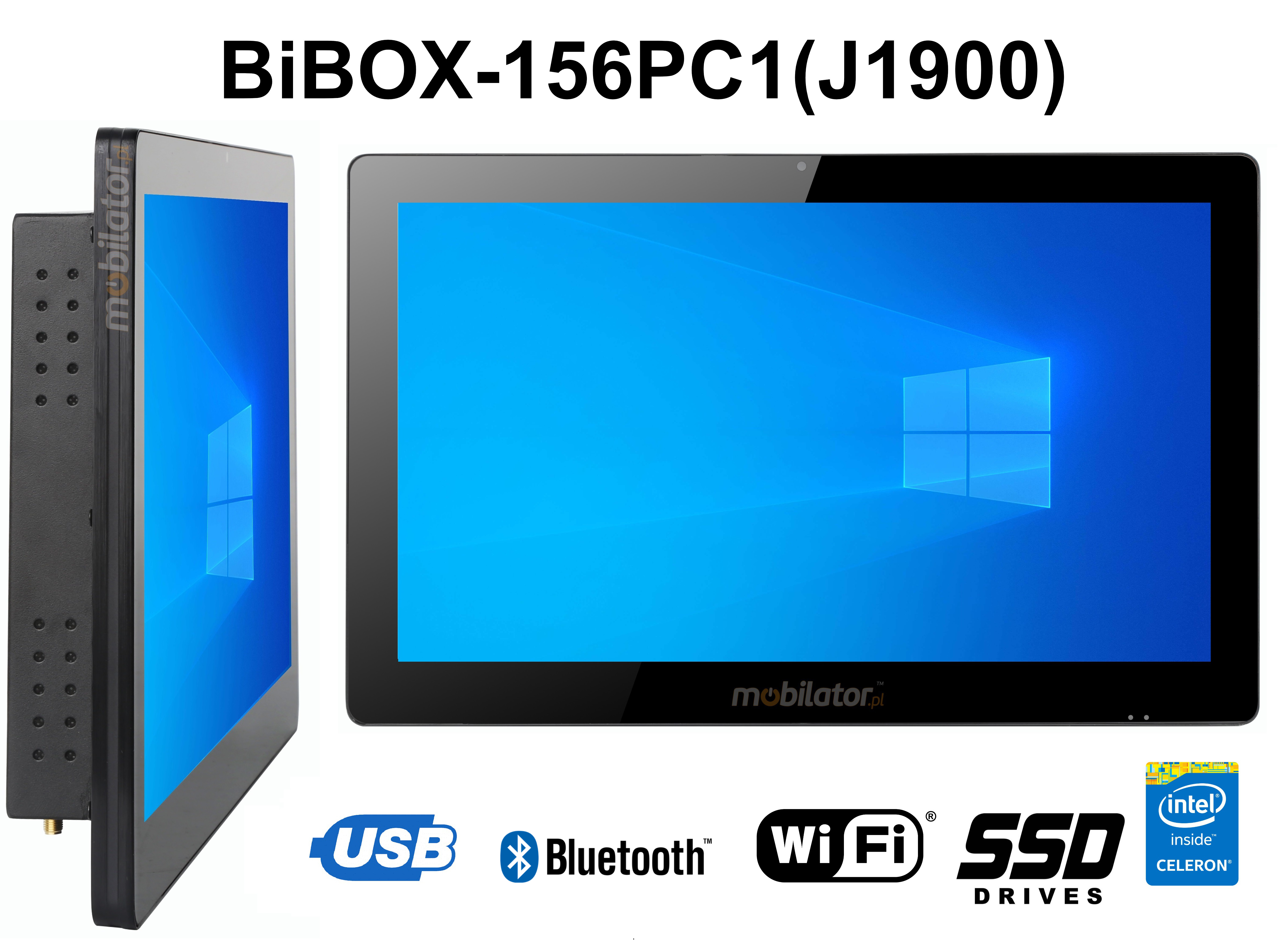 BiBOX-156PC1 (J1900) v.7 - Metal industrial panel with WiFi, Bluetooth, IP65 resistance standard for screen with 128GB SSD disk and Windows 10 PRO license