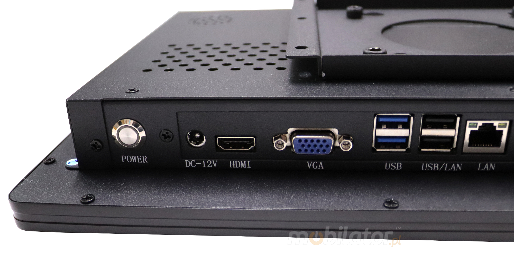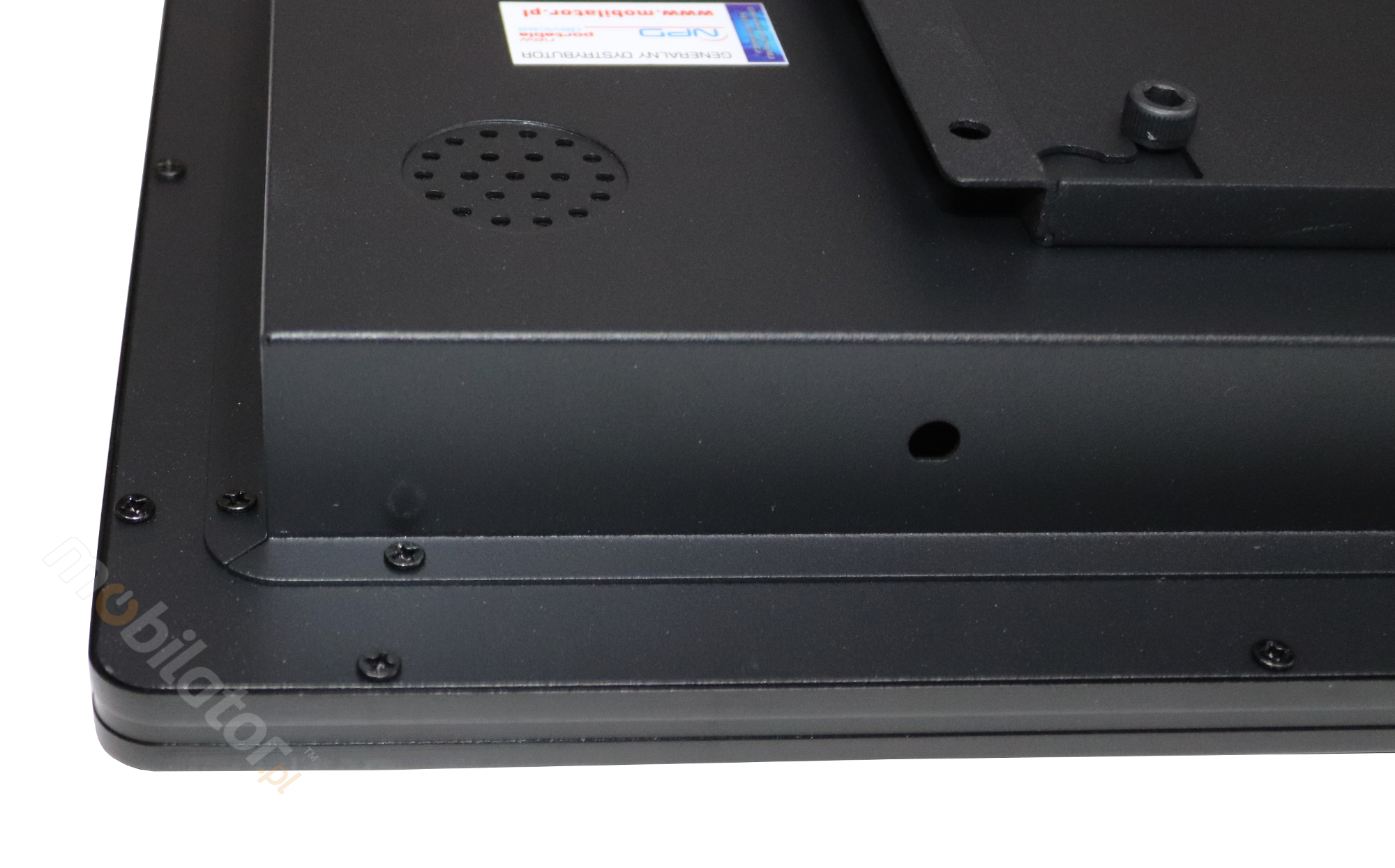 The panel PC has a good-quality metal casing. It is an important element of the cooling system thanks to specially designed cutouts that facilitate air circulation inside the housing. The overall design of the device is focused on simplicity and functionality appreciated by professionals, as an accessory the panel can be equipped with passive cooling.