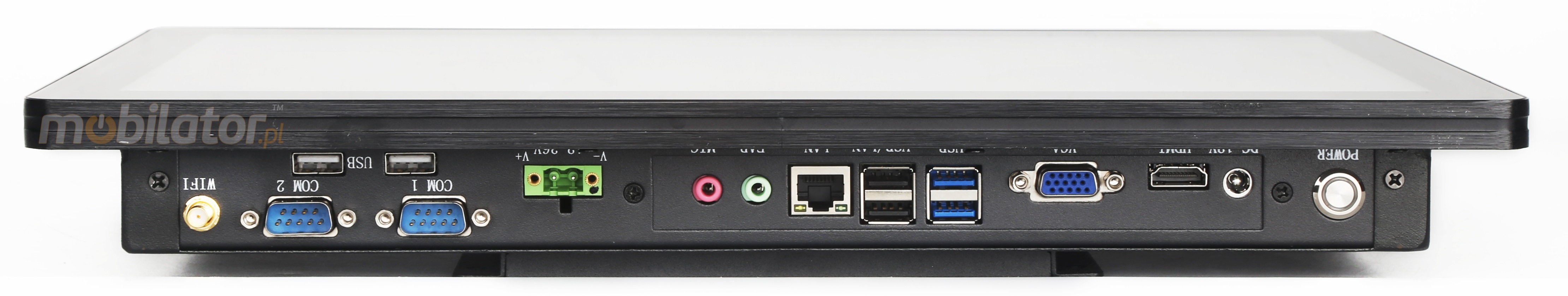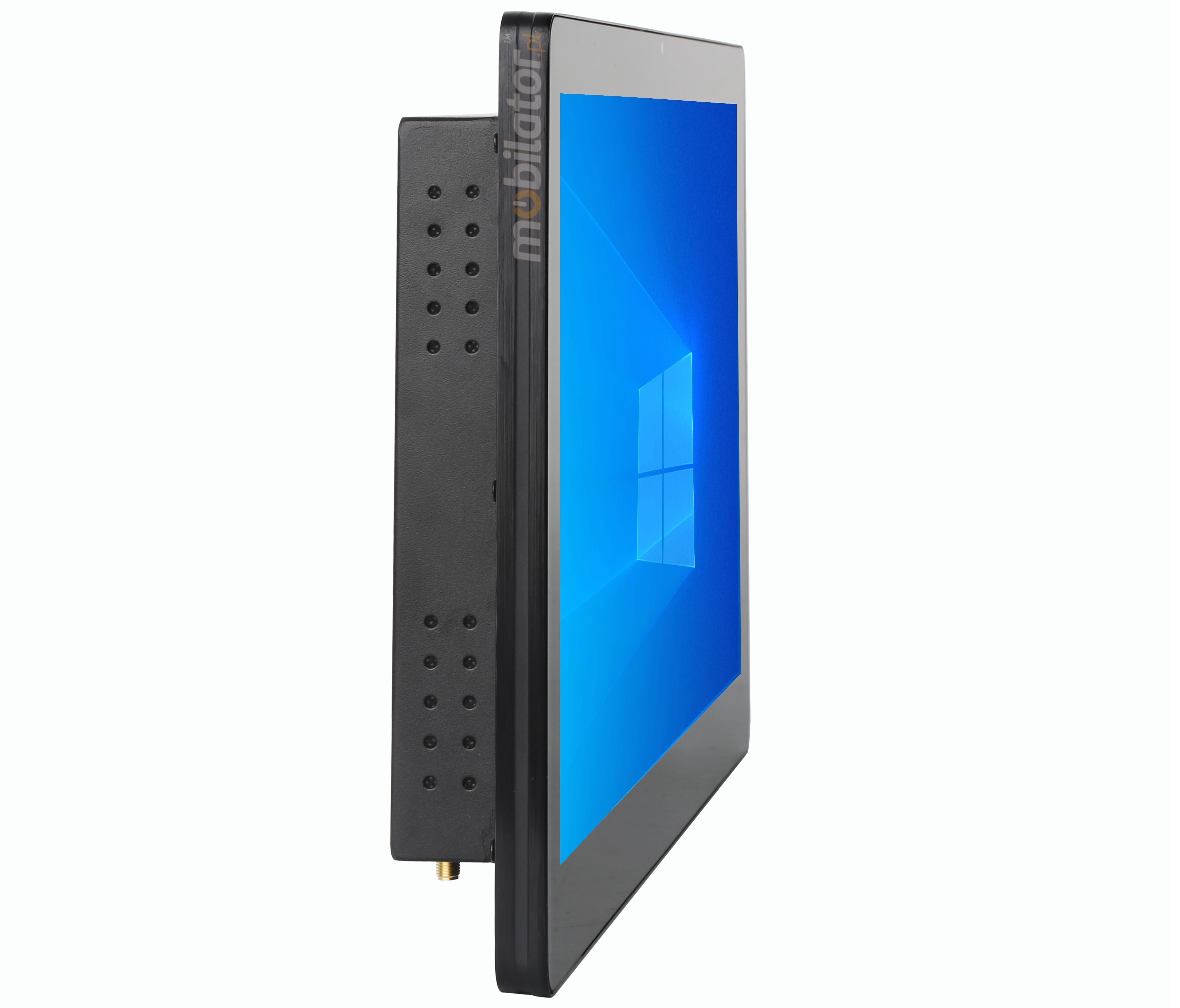 The panel PC has a good-quality metal casing. It is an important element of the cooling system thanks to specially designed cutouts that facilitate air circulation inside the housing. The overall design of the device is focused on simplicity and functionality appreciated by professionals, as an accessory the panel can be equipped with passive cooling.