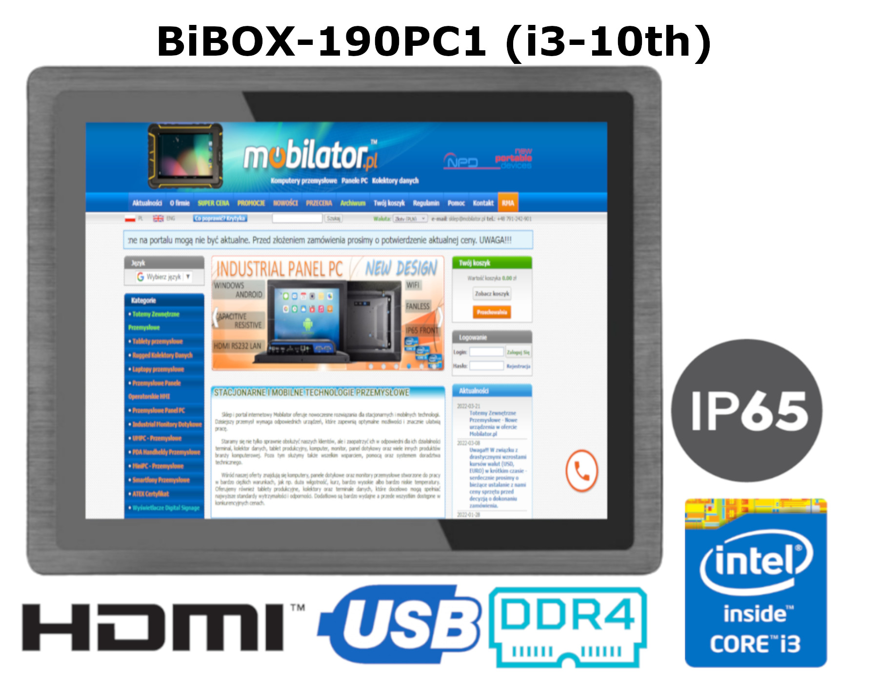 BiBOX-190PC1 (i3-10110U) v.1 – Waterproof Industrial Panel PC with powerful Intel Core i3, IP65 and 4GB RAM (1xLAN, 4xUSB) processor