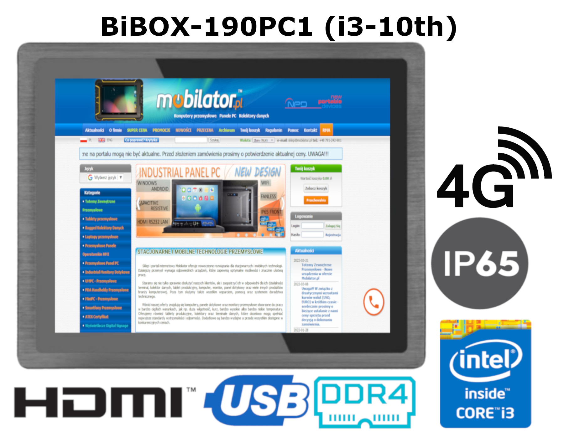 Amplified, metal industrial computerBiBOX-190PC1 has a water-resistant and scratch-proof 19" LED screen 1920x1080 resolution offers good image quality, and high brightness in the 300 nits range gives better color saturation and contrast and allows significantly improved visibility even in the case of incident The display of the resistive type provides the user with a clear image and ease of use by touch.