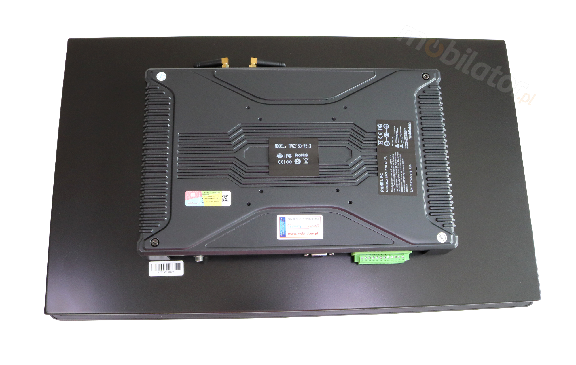 The panel PC has a good-quality metal casing. It is an important element of the cooling system thanks to specially designed cutouts that facilitate air circulation inside the housing. The overall design of the device is focused on simplicity and functionality, appreciated among professionals, as an accessory the panel can be equipped with passive cooling.