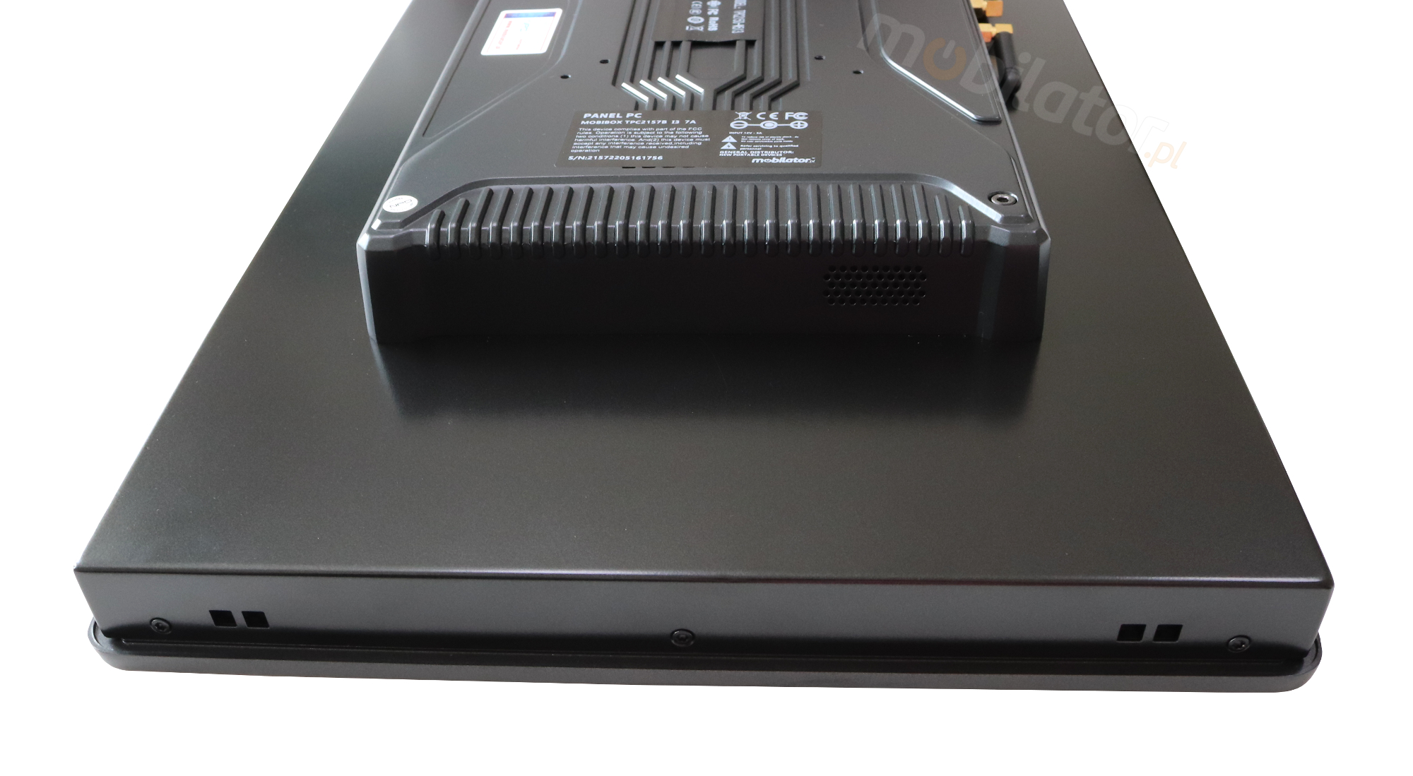 The panel PC has a good-quality metal casing. It is an important element of the cooling system thanks to specially designed cutouts that facilitate air circulation inside the housing. The overall design of the device is focused on simplicity and functionality, appreciated among professionals, as an accessory the panel can be equipped with passive cooling.