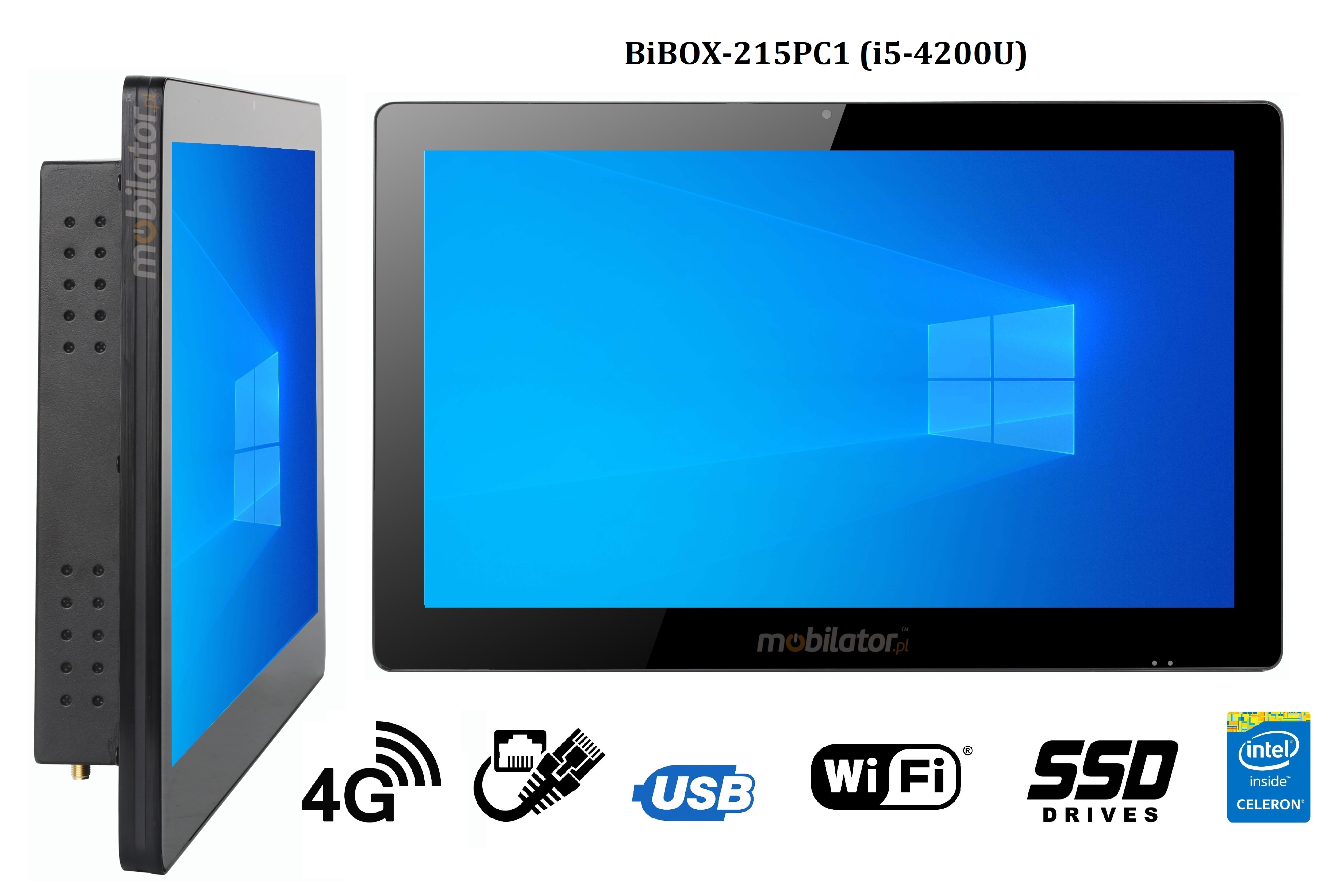 Amplified, metal industrial computer BiBOX-215PC1 has a water-resistant and scratch-proof 21.5" LED screen 1920x1080 resolution offers good image quality, and high brightness in the 250 cd/m² range gives better color saturation and contrast and allows significantly improved visibility even in the case of incident The display of the resistive type provides the user with a clear image and ease of use by touch.