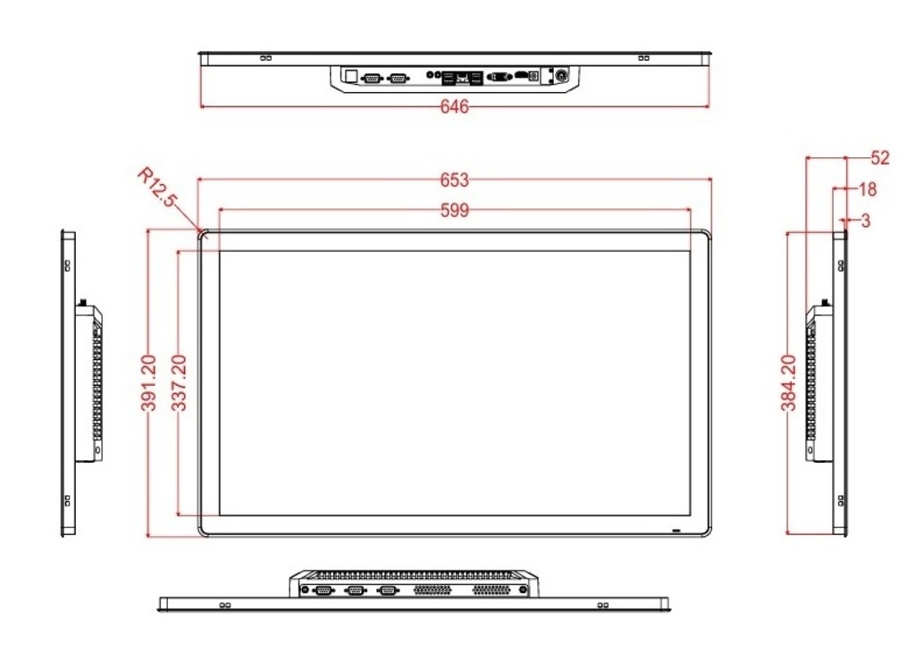 For versatile integration into industrial environments, the BiBox 270-I58 is equipped with a comprehensive set of interfaces. This modern unit provides maximum functionality with a variety of connections, including four USB ports, an HDMI output for image transmission, and two LAN ports for reliable network communication. Two RS-232 serial ports are crucial for automation systems. Furthermore, the device offers full audio support with a separate microphone input (MICx1) and headphone output (EARx1).
