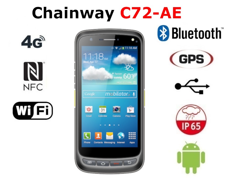 Chainway C72-AE v.1 - Shockproof data terminal with GPS, IP65, MTK MT6765 octa-core processor, 3GB RAM and 32GB ROM, NFC