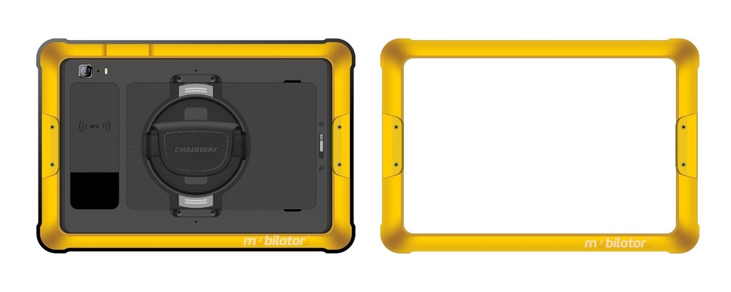 The reinforced rubber boot (Rugged Rubber Boot) provides a reliable shield for the tablet. It absorbs shock and protects the device from drops and heavy impacts, ensuring compliance with durability standards. This minimizes the risk of failure and costly repairs, which is crucial in demanding work environments. Its ergonomic design significantly improves grip, preventing accidental slippage, even with wet hands or gloves. This ensures the tablet maintains full operational efficiency and reliability while extending its lifespan.