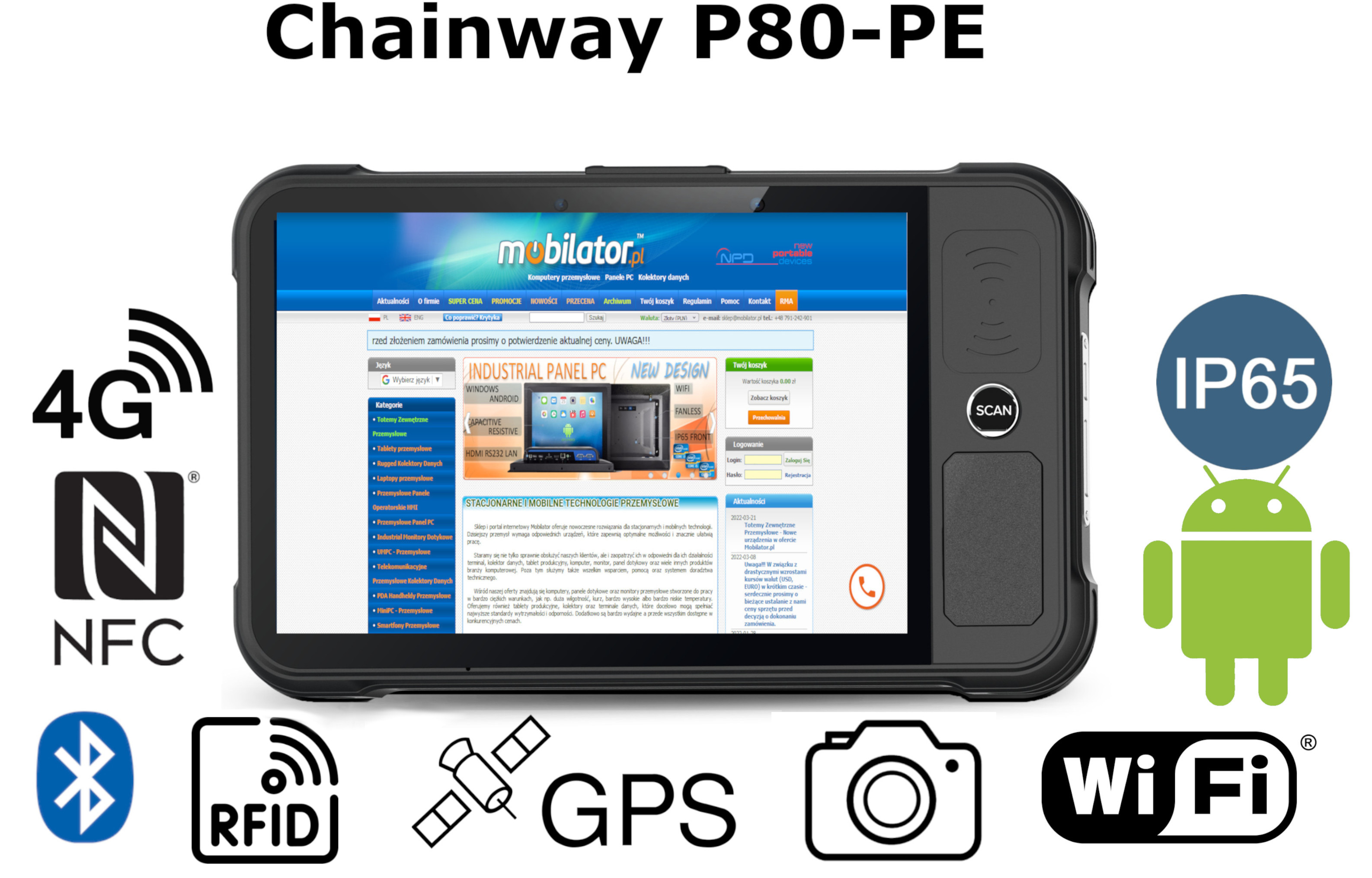Chainway P80-PE is a modern, waterproof industrial tablet designed for extreme applications. It has a specially designed, reinforced construction that meets the requirements of IP65, which confirms the protection of the device against dust and water. It is also resistant to falls, even on hard surfaces.