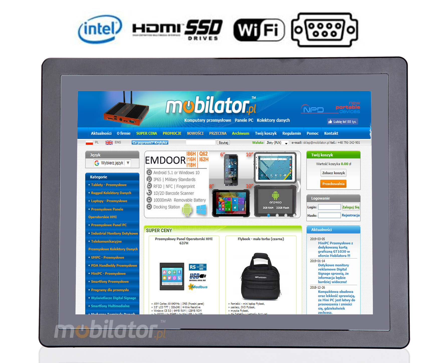 The dust-proof industrial PC panel uses an efficient and energy-saving Intel Intel Core i5 processor. In its interior there are two cooperating cores enabling more efficient processing of many tasks at the same time. Shared cache memory in which a multi-level hierarchy is used is dynamically allocated to each processor core depending on the load. This reduces the average access time to the main memory. Improved graphics card technology allows you to enjoy movies at full resolution and HD quality.