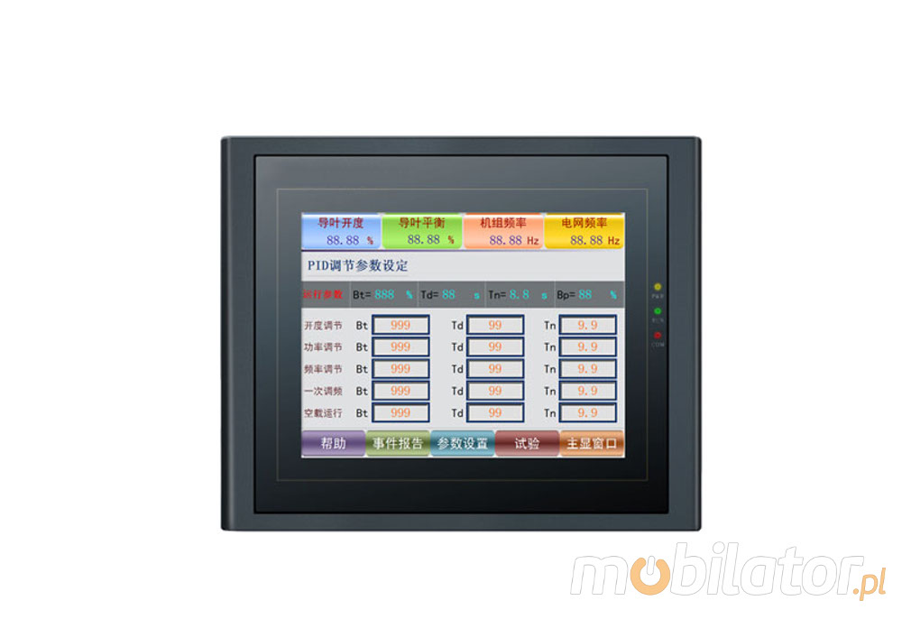 HMI enclosure is made from a specialized blend of PC / ABS (polycarbonate / acrylonitrile-butadiene-styrene)providing a very high resistance to mechanical damage. With this construction it is ready for use even in extreme conditions such as heat, cold or vibration at any time. In addition, the front panel of the device has IP65 international standard, which confirms the water resistance and a complete protection against dust.